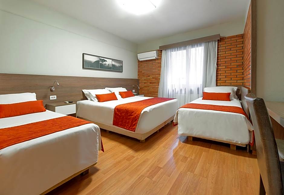 Upper floors are accessible by elevator, ensuring easy access to rooms, and the setup invites a restful stay after exploring Gramado.